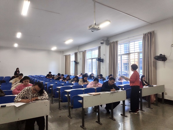 本次考卷以《“不忘初心、牢记使命”主题教育应知应会基础知识复习提纲》为材料出题。考试内容涉及主题教育的总要求、四个意识、四个自信、两个维护的相关概念;入党誓词、党的纪律、处分等党的基本知识、中国梦等国家政策以及时事新闻等内容。本次测试共有314人参考,包括在职教师党员27人以及在校学生党员287人。考试现场秩序井然,各位党员同志都认真沉着、严肃冷静、无破坏考场纪律现象。