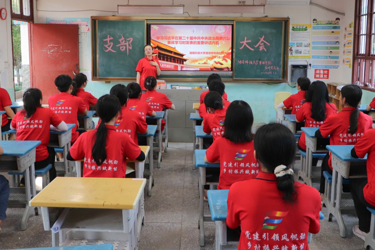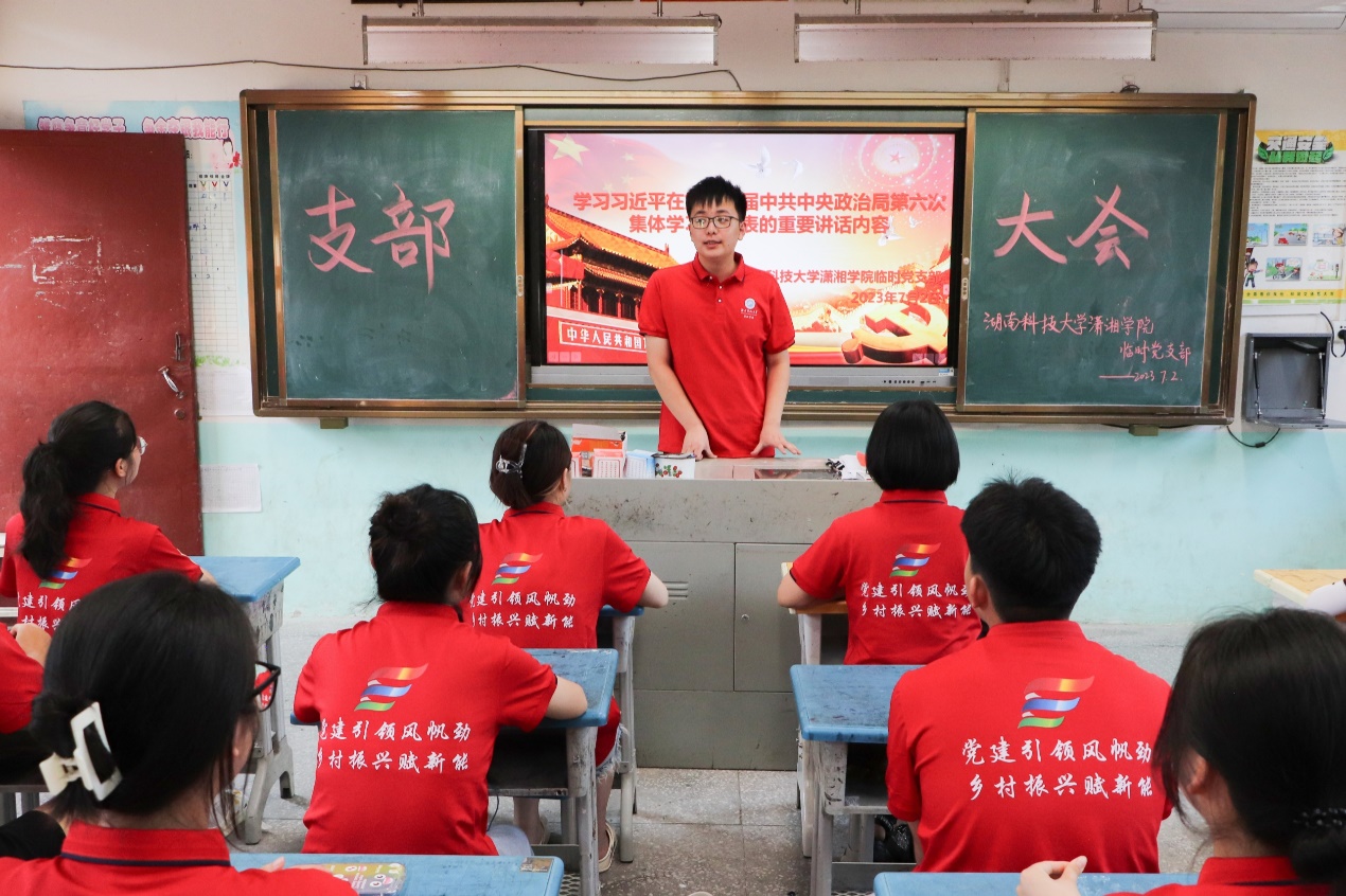 为深入学习贯彻习近平新时代中国特色社会主义思想,充分发挥党组织战斗堡垒和党员先锋模范作用,努力将学院学生培养成为担当民族复兴大任的时代新人,7月2日下午,永利官网于湖南省怀化市通道县木脚完全小学观看习近平在第二十届中共中央政治局第六次集体学习重要讲话内容视频。学院暑期“三下乡”实践团临时党支部全体成员共同观看。