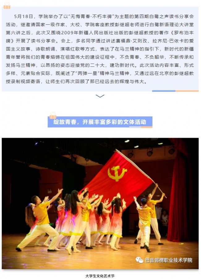 上一条: 党建引领产教融合 访企拓岗促进就业---巴音学院党政办党支部与天成西域党支部共同举办“党旗映天山”主题党日活动