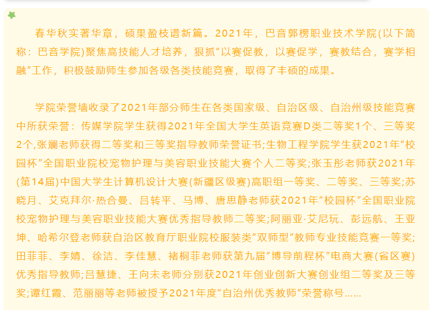 上一条: 提质培优 增值赋能---巴音学院注重内涵发展彰显办学特色