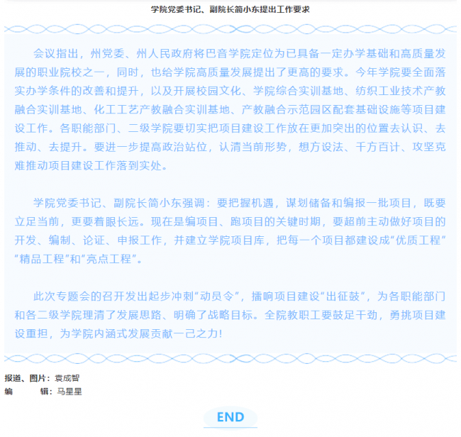 下一条: 巴音学院不一样的“开学第一课”---教职工到企业参观学习,深化产教融合、校企合作