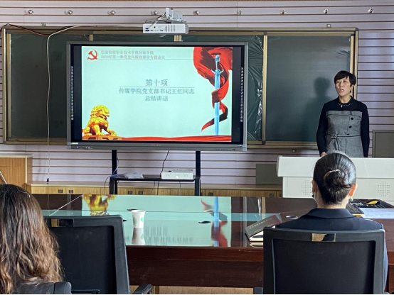 传媒学院党支部书记王红总结讲话:“传媒学院党支部要以全国高校样板支部建设为新的起点,结合党风廉政建设和反腐败斗争工作,加强党员、教师的作风建设和纪律建设,为传媒学院党支部各项工作的开展提供坚强有力的保障。全体教师要筑牢思想防线,以积极的姿态深入推进党风廉政建设工作中去。”