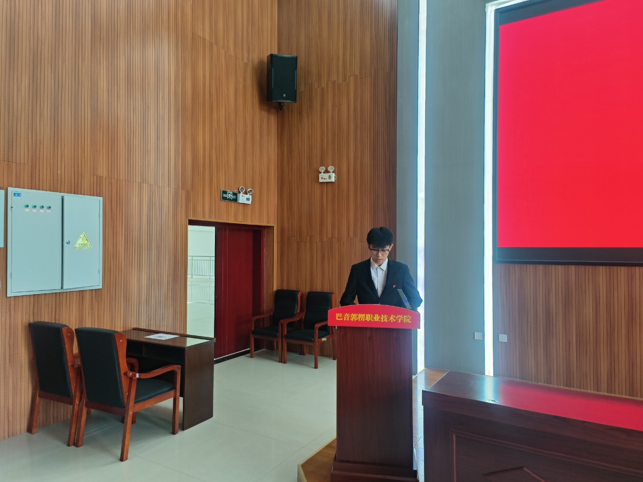 图为:资源与环境学院党支部学生张李政作交流发言