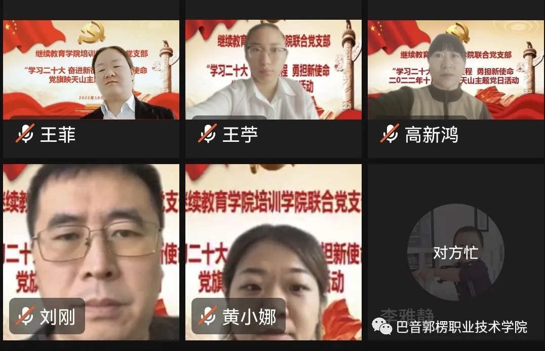 10月24日,继续教育学院、培训学院联合党支部召开“学习二十大 奋进新征程 勇担新使命”党旗映天山主题党日活动。会议由支部书记石雪萍主持,全体党员、教师参会。