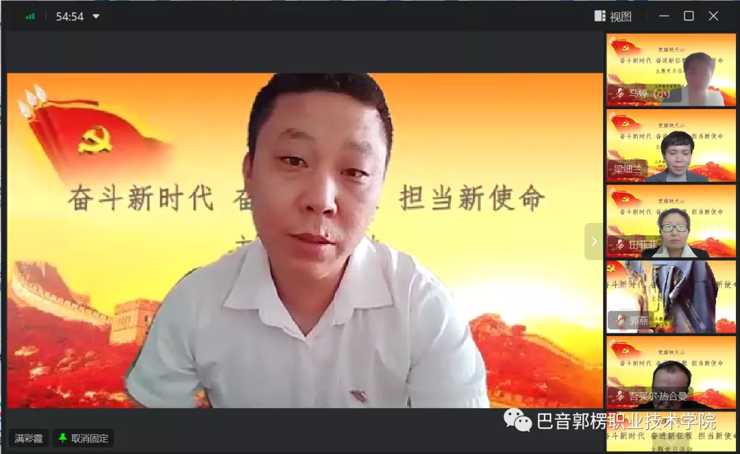 最后,梁细兰同志指出,党的二十大明确宣示党在新时代新征程上举什么旗、走什么路、以什么样的精神状态、朝着什么样的目标继续前进。党的二十大报告是我们党团结带领全国各族人民在新时代新征程坚持和发展中国特色社会主义的政治宣言和行动纲领。认真学习宣传贯彻党的二十大精神,是当前和今后一个时期的首要政治任务,我们要立即行动起来,迅速掀起学习宣传贯彻党的二十大精神热潮,带着信念、感情、使命学,真正做到学深悟透、融会贯通、真信笃行,紧紧围绕“五个牢牢把握”,深刻领悟“两个确立”的决定性意义,增强“四个意识”、坚定“四个自信”、做到“两个维护”,在党的旗帜下团结成“一块坚硬的钢铁”,心往一处想、劲往一处使,勇担“为党育人、为国育才”的光荣使命,立德树人,为新疆社会稳定和长治久安培养爱国爱疆担当奉献的时代新人。进一步强化党建引领发展的观念,把学习贯彻党的二十大精神与优质校建设、教学诊断诊断与改进、教育教学、疫情防控、样板党支部评估验收、年终绩效考核工作有机结合起来,推动党建与教育事业发展深度融合、一体推进,用高质量党建引领高质量发展,以实际行动践行二十大精神。