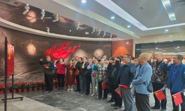 全体党员面对党旗重温入党誓词