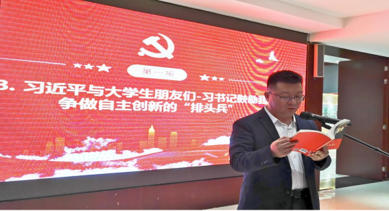 图书馆副馆长李再发领学《习近平与大学生朋友们—习书记鼓励我争做自主创新的“排头兵”》