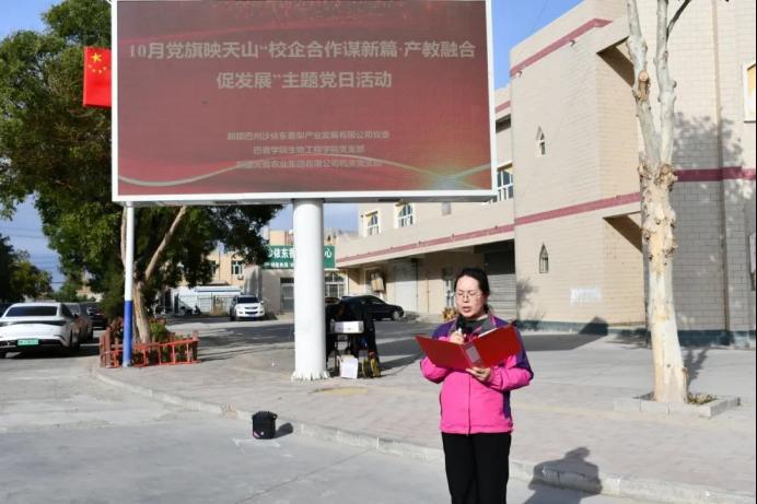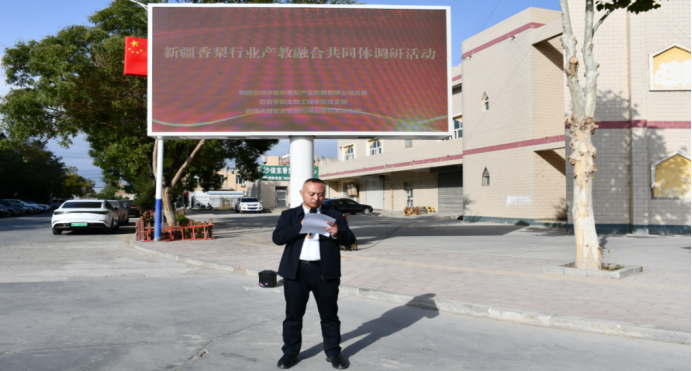 为持续推进党建与业务工作深度融合,充分发挥党组织战斗堡垒作用和党员先锋模范作用,10月18日,PP电子游戏网站(以下简称巴音学院)生物工程学院党支部联合新疆巴州沙依东香梨产业发展有限公司(以下简称沙依东公司)党委、新疆天苗农业集团有限公司(以下简称天苗集团公司)机关党支部开展10月党旗映天山“校企合作谋新篇·产教融合促发展”主题党日活动,生物工程学院党支部全体党员及师生代表、新疆天苗农业集团有限公司党支部党员代表、新疆巴州沙依东香梨产业发展有限公司党支部党员代表参加本次活动。