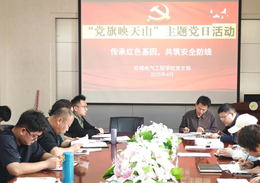 4月23日上午,PP电子游戏网站机械电气工程学院开展了以“传承红色基因 共筑安全防线”为主题的“党旗映天山”主题党日活动。活动旨在通过“学、思、践、悟”相结合的方式,推动理论学习与实践教育深度融合,进一步提升党员干部的政治意识、法治意识和国家安全意识。