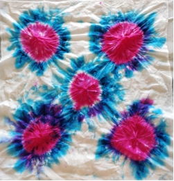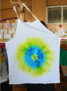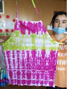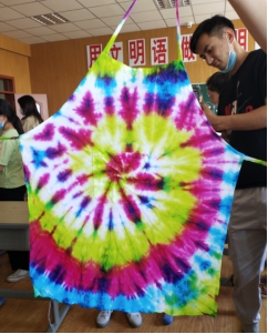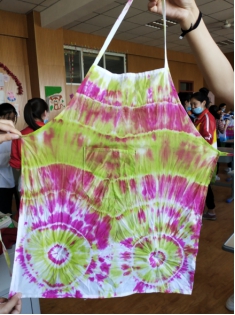 学生用方巾、袜子、白T恤、围裙扎染出各种美丽图案,当他们打开自己扎染的作品,一片惊叫声和感叹声,为自己的作品叫好!因为扎染的作品具有偶然性,永远没有重复的作品,每一个学生的作品都是独一无二的,独具魅力。学生们通过这次教学,感受到传统艺术的魅力,纷纷表示要把自己所学带到以后的幼儿园教学中,教给自己的学生,让祖国的传统艺术传承下去!