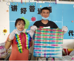张传华老师用了两节课时间完成本课程的教学,首先介绍扎染的历史,讲解扎染的艺术特色,然后展示扎染的制作技法,并现场演示扎染制作技法和扎染过程,让学生能亲眼目睹扎染艺术的魅力,感叹它的神奇!激发了学生的学习兴趣,纷纷跃跃欲试,亲历自己的作品制作,感染传统艺术魅力。