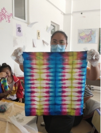 张传华老师任教的是18高职学前教育专业的《手工制作》课程,她带来的是《扎染》课程教学。本课程是安排在学前教育专业的第四学期,学生已经具有一定的美术基础和手工基础,能顺利完成扎染课程的学习。