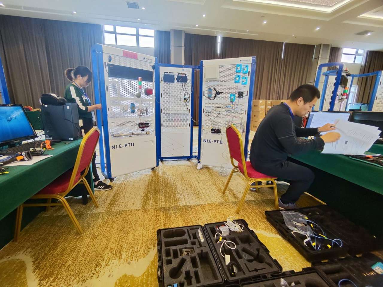 图为电子学院蹇文军、程萍老师正在参加物联网技术应用比赛