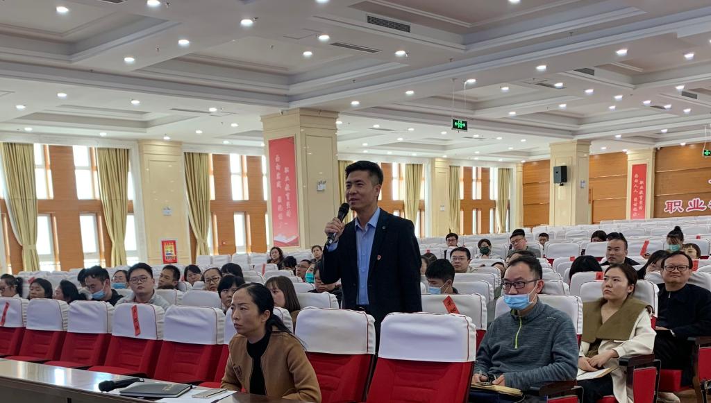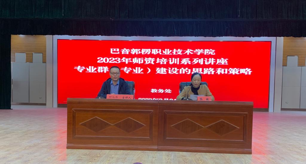 本次培训由学院党委委员、教务处处长张敏主持,各二级学院教学副院长,教研室主任,专业带头人,教学骨干,教务处,督导室全体参会,同时还邀请了铁门关职业技术学院党委副院长石琳玮等一众领导在线上同步收听了培训。最后张敏委员对柳教授的讲解给予高度评价,代表学院表示衷心感谢,并对在场的骨干教师们提出了殷切希望,希望他们能用心钻研专业,潜心研究,对学院专业群建设作出杰出的贡献。
