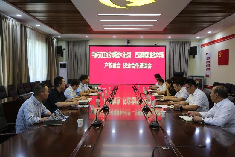 为进一步加强校企合作,促进创新型应用人才培养,7月19日,巴音学院与中石化中原石油工程有限公司塔里木分公司在勤政楼二楼视频会议室举行了“校企合作产教融合座谈会及订单班”签约仪式。中石化中原石油工程有限公司塔里木分公司党委书记苏前荣,副经理马孟学,党委副书记、工会主席、纪委书记吴现华,副总经济师、党委组织部部长、人力资源部主任蒲平,党委办公室主任尹庆军,人力资源部员工管理岗主管欧阳磊,PP电子游戏网站党委副书记、院长古丽娜·肉孜,党委委员、副院长李宏,产教融合服务中心负责人于泉,资源与环境学院党支部副书记、院长张茫茫,教务处副处长程志,资源与环境学院副院长任龙,招就处干部白俊杰出席了签约仪式,会议由资源与环境学院党支部副书记、院长张茫茫主持。