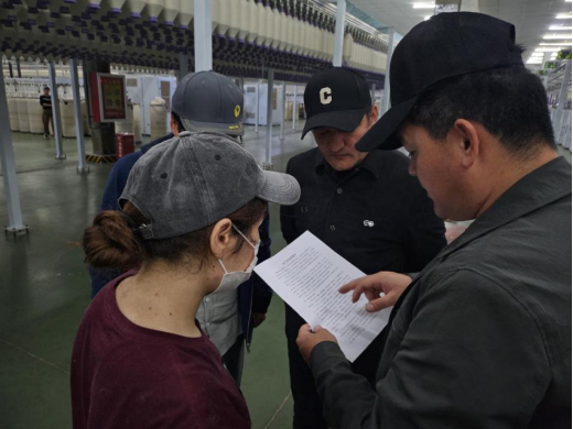 为全面了解掌握实习生的实习情况,10月22日上午,PP电子游戏网站(以下简称巴音学院)党委委员、纺织服装学院党支部书记阿布拉江·阿尤甫带领就业专干、实习班班主任走访利泰丝路有限公司、中泰金富特种纱业有限公司并慰问实习学生。