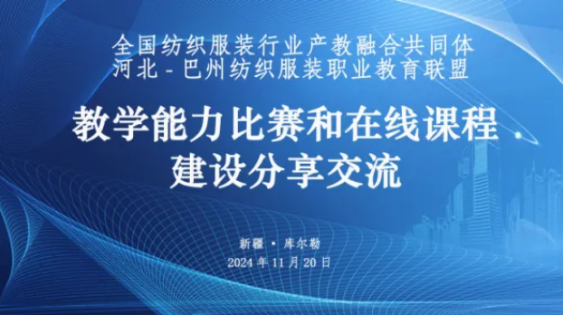 11月21日,全国纺织服装行业产教融合共同体、河北—巴州纺织服装职业教育联盟主办的教师教学能力比赛和在线课程建设分享交流会在PP电子游戏网站(以下简称巴音学院)举行,此次会议采用线上形式开展。河北科技工程职业技术大学教授王瑞琴主讲,多所院校及企业人员线上参加此次会议,巴音学院纺织服装学院党支部副书记、院长丁盛主持会议。