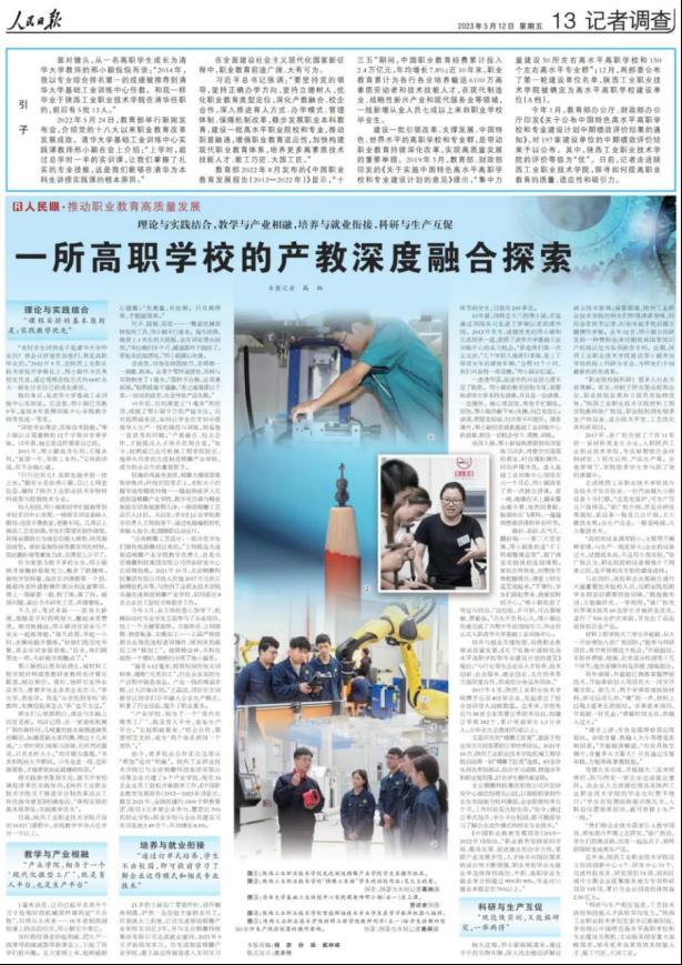 “科研与生产相互促进,工艺技术供给和技能人才供给双向发力。”陕西工业职业技术学院党委书记惠朝阳说,学校将以中国特色高水平高职学校和专业建设为契机,主动服务国家重大战略需求,培养更多高素质技术技能人才、能工巧匠、大国工匠。