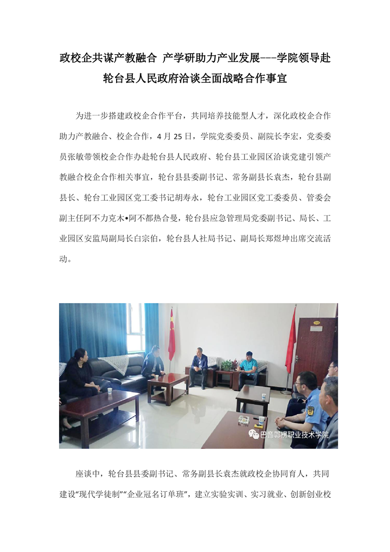 上一条: 访企拓岗促就业 巴音学院在行动——学院领导赴巴州中泰鑫和服装有限公司洽谈校企合作