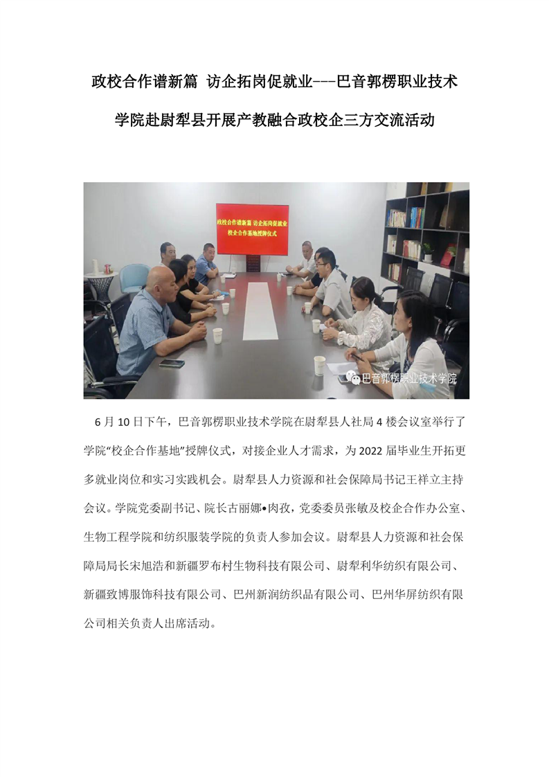 上一条: 政校合作谋发展 产教融合谱新篇--河北-巴州纺织服装职教联盟政校合作产教融合交流会