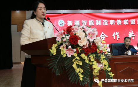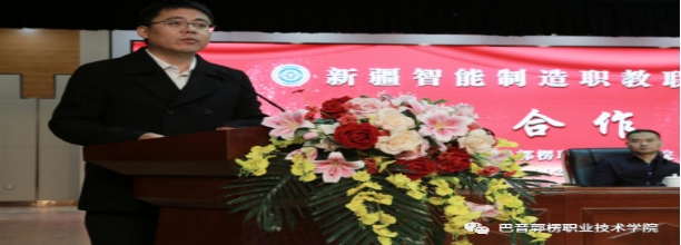 铁门关职业技术学院党委副书记、副院长余彬宣读《新疆智能制造职教联盟章程》
