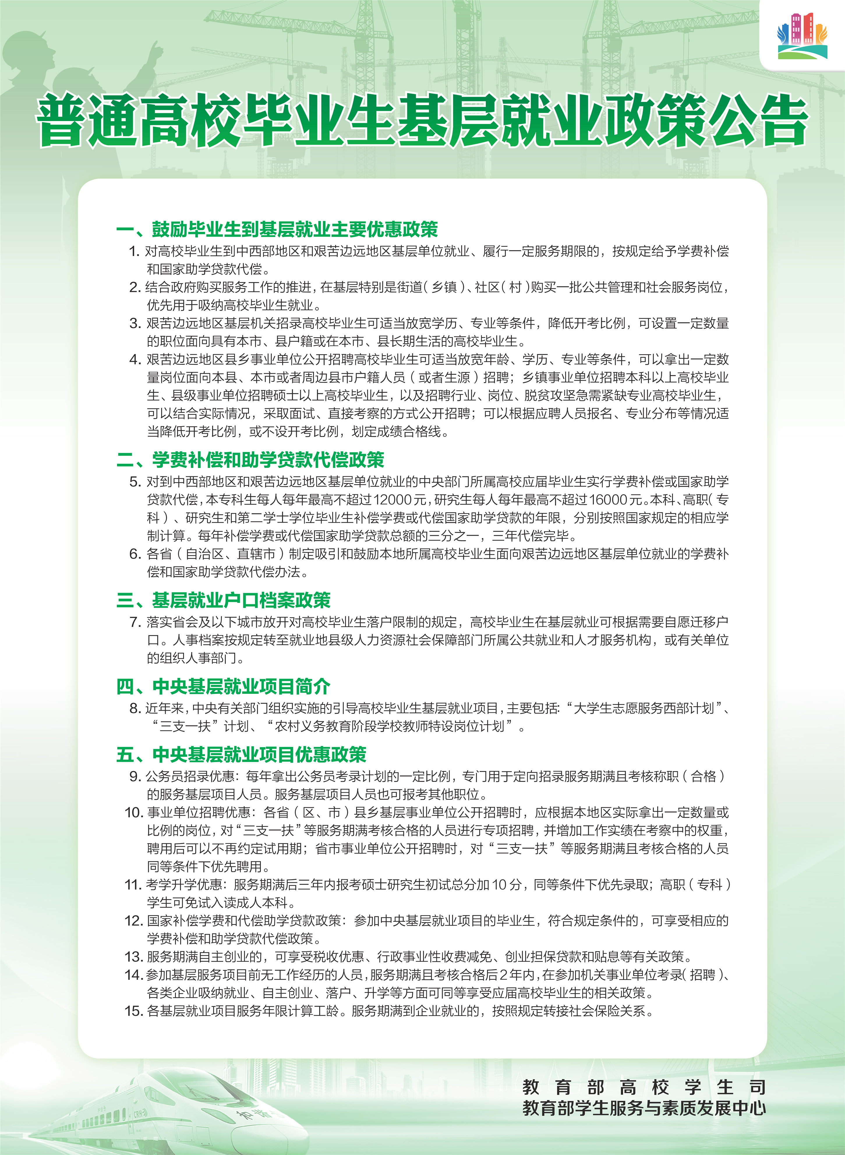 普通高校毕业生基层就业政策公告