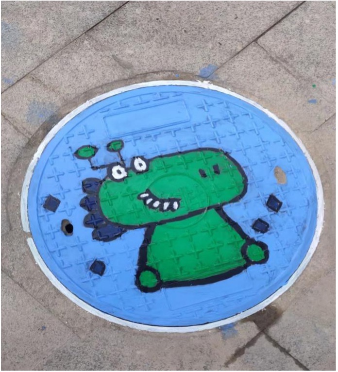 井盖涂鸦是一种以颜料彩绘的形式呈现,以色彩、创意、环保为宗旨的行为艺术。在启动仪式结束后,同学们被有序带领到目的地集合。分配完任务后,大家都迫不及待的开始了此次彩绘活动。从对选取颜料认真仔细和彩绘内容的精心挑选到绘画时的全身心投入,无不体现着学生认真、积极的工作态度。