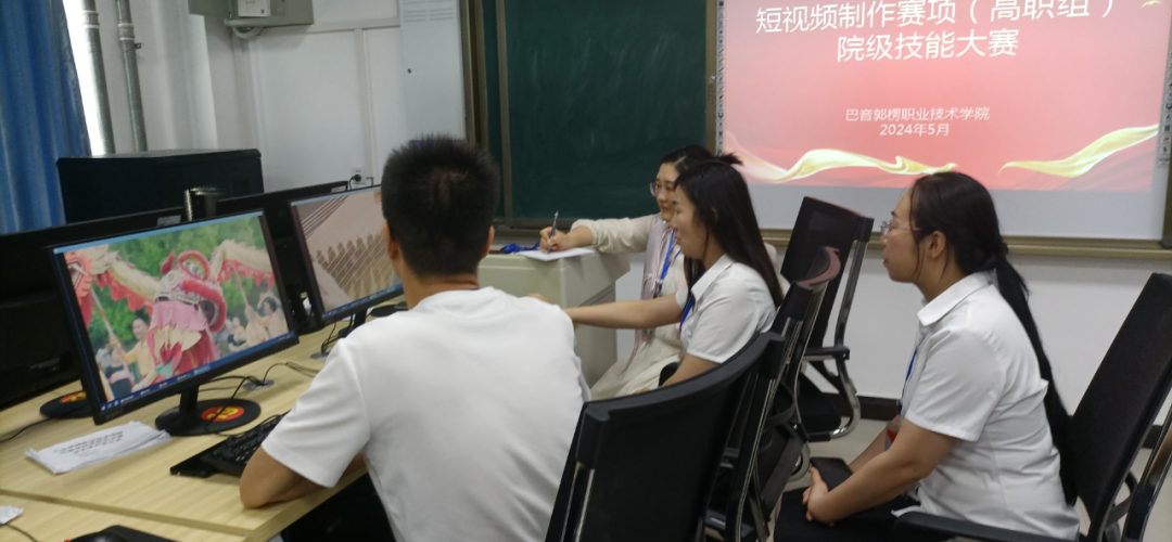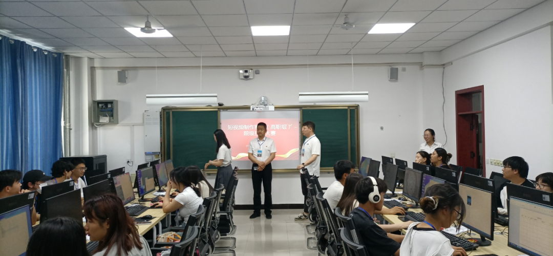 竞赛命题按照影视多媒体技术专业教学标准,结合岗位需求及对人才培养的要求,统一命题。竞赛考核任务分为编制脚本、制作短视频、添加配音三个模块,完整地覆盖短视频制作流程,充分体现了技术与艺术的结合。比赛时长为 1.5 个小时,参赛选手在大赛组委会提供的软硬件环境下,根据提供的素材及制作要求按时完成赛题。经过激烈的角逐,经8名专任教师共同评审,最终产生6组获奖学生。
