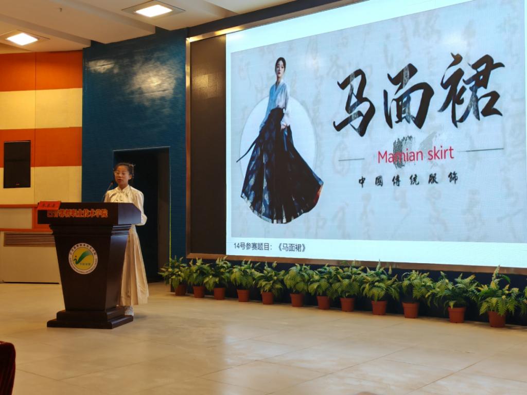 获得二等奖学生齐丛灿以《马面裙》为主题进行演讲