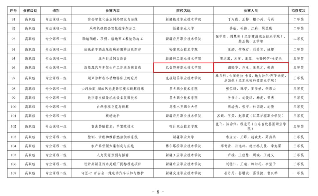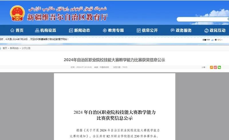 7月18日,自治区教育厅发布了2024年自治区职业院校技能大赛教学能力比赛获奖信息公示。