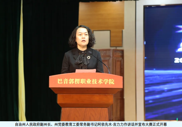 开幕式在庄严的国歌声中拉开帷幕。自治州人民政府副州长、州党委教育工委常务副书记阿依先木·吉力力作讲话并宣布大赛正式开幕。她指出,新疆职业院校技能大赛是践行习近平总书记关于职业教育的重要论述的具体实践,是落实新疆教育大会安排部署的具体要求,也是对巴州职业教育发展成果的全面检阅,对加快培养更多高素质技术技能人才,推动全疆经济社会高质量发展具有重要意义。巴州党委教育工委副书记、PP电子游戏网站党委书记李冬玲主持会议。她表示,PP电子游戏网站将用热情的服务、饱满的精神办好这次大赛,并充分用好赛事平台资源,与全疆各兄弟院校和支持企业深入交流,互学共鉴。