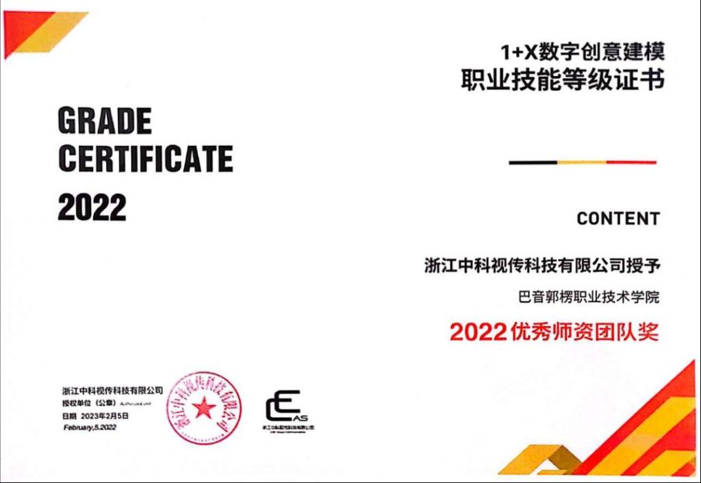 图4 2022年PP电子游戏网站考点被评价组织授予优秀师资团队奖