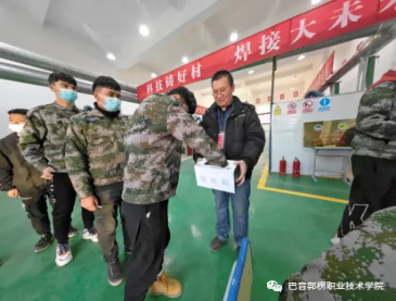 图5 学生参加考核鉴定手持焊接工件现场照片