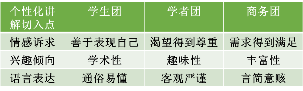 兴趣倾向、情感诉求及语言表达为个性化讲解的切入点。