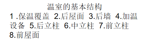 1. 介绍温室的基本结构,包括屋顶形式(如圆拱形、尖顶形)、墙体材料(如玻璃、塑料薄膜)、通风系统、加热与冷却系统等。 2. 使用PPT或实物模型展示不同结构类型的温室。 3.讲解每种结构的特点及其对温室性能的影响。