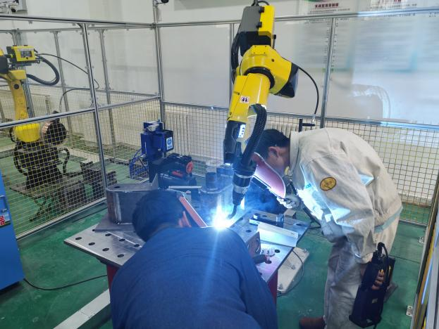 实习实训:对接真实职业场景或工作情境,在校内外进行电工、特殊焊接机器人操作、工业机器人操作编程、工业机器人系统集成、工业机器人系统智能运维等实训。在智能制造企业、生产应用企业、智能焊接生产企业等单位进行岗位实习。