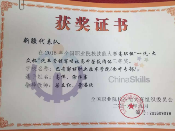 图5 自治区汽车营销赛项获奖学生及证书