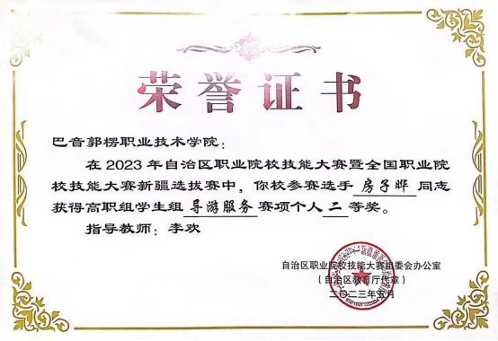 11 旅游管理专业学生参加2023年自治区职业院校导游服务赛项获二等奖