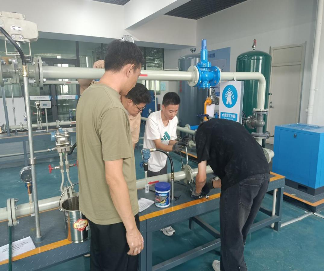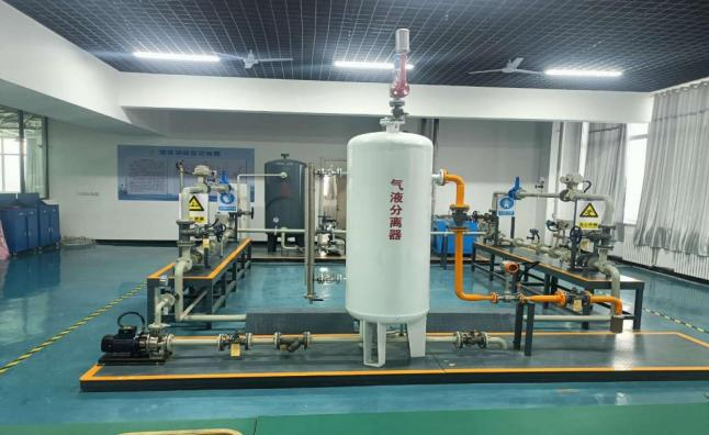 实习实训:校内虚拟仿真实训室对应真实职业场景或工作情境,包含油天然气增压分输场站、油库、联合站等站场,可进行不同工种、不同工艺操作作业等实训项目;流体输送实训间内设置有流体输送装置一套,同时配备各类常见维修工具,可完成常见工厂企业的设备维修实训实操。