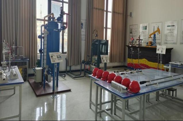 4.钻井井控实训室(2024年10月底开始使用):主要有钻井井控模拟设备、仿真操作控制台、 多媒体教学设备:如投影仪、大屏幕显示器等,用于展示教学资料、演示操作流程和分析案例。计算机模拟软件:安装有专业的钻井井控模拟软件,能够模拟不同工况下的井控情况,让学生进行反复练习等。 能够为学生提供逼真的实训环境,有助于他们更好地掌握钻井井控技术,提高应对实际问题的能力。