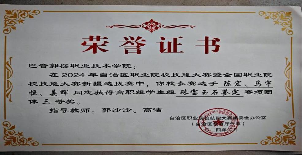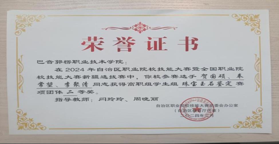 5 参加自治区珠宝玉石鉴定、工程测量技术技能大赛获奖证书