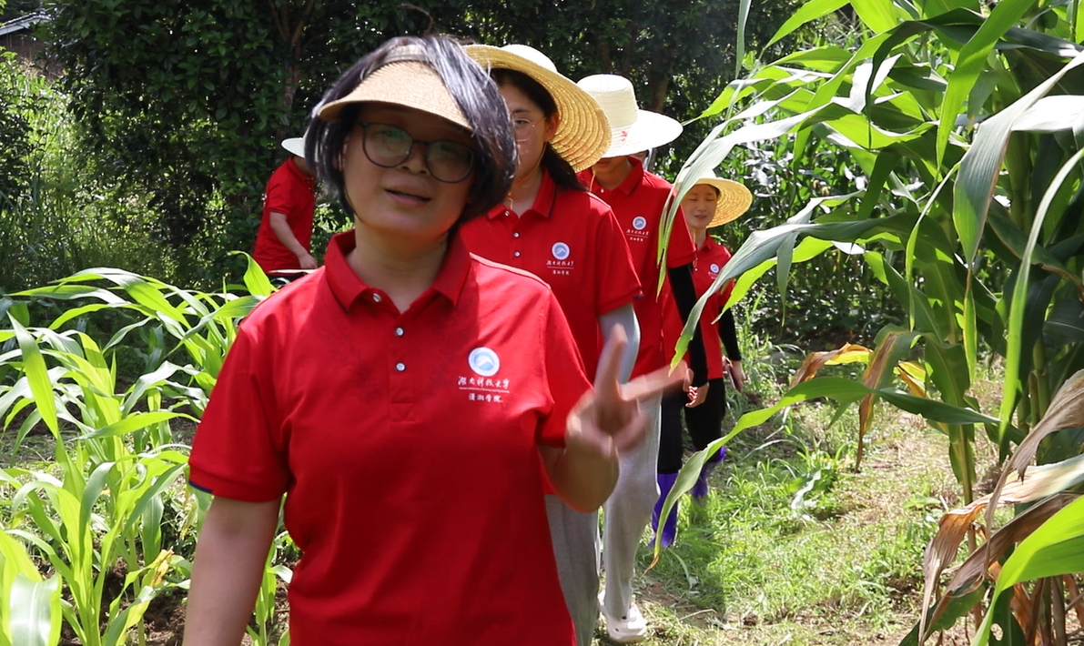 潇湘青年学子头顶烈阳、手持锄头,向尚未成长为高秆玉米的田地内肆意丛生的杂草进行铲叶刨根。铲草动作通过一遍遍的劳动实践,逐渐从生疏变为熟练,铲除的杂草也越堆越高。随后,有丰富经验的当地阿姨指导师生们将铲除的杂草和碎土一起堆肥于苗秆下,以减少水分蒸发、营养物质流失。