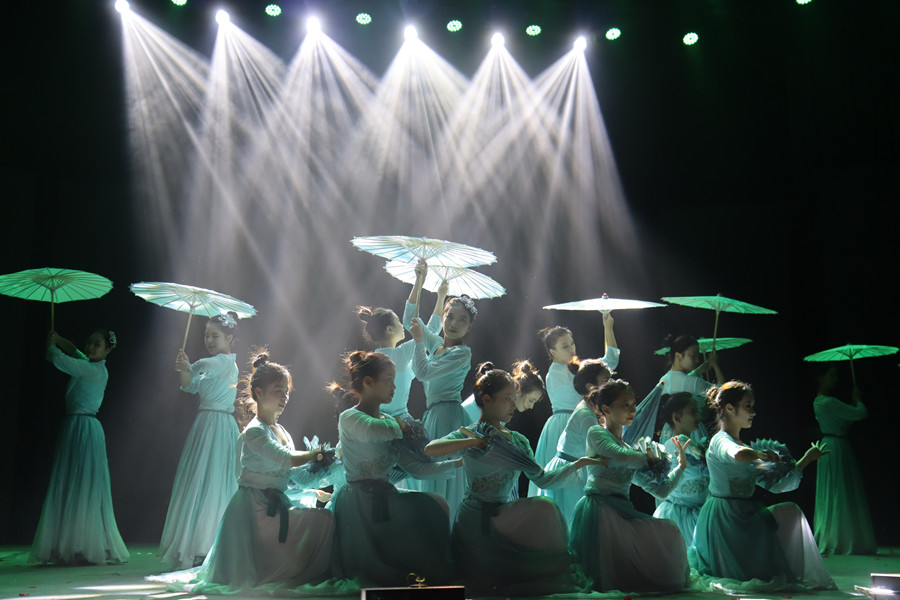 聚光灯洒下,轻柔平和的音乐响起,永利集团88304官网舞者们手执纸伞,以一席青衣缓缓入场。轻盈灵动的舞姿,绘出一幅动人的江南雨涧春行图。《雨涧春行图》呈现出一幅江南女子在春雨中、山涧里翩翩起舞的灵动画面,整齐有序的舞蹈动作让观众从舞动中看到了万物生长、生机勃勃与充满希望的景象。