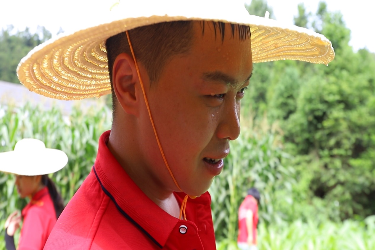 夏风吹过,潇湘青年学子头顶烈阳、手持锄头,在木脚完全小学周边的学生劳动教育基地务实为民、辛勤耕耘,尚未成长为高秆玉米的田地内肆意丛生的杂草被实践团成员一遍遍的挥舞而铲叶刨根,越堆越高。随后,师生跟随有丰富经验的当地阿姨将铲除的杂草和碎土一起堆肥于苗秆下,以减少水分蒸发、营养物质流失。一上午的努力,实践团成员终于将田地的杂草清理干净,抛下汗水的土地孕育金黄的硕果,这是实践团成员和在校孩子们辛勤种植的成果。稚嫩的玉米苗就此更加地茁壮成长,实践团成员也由此戮力奋进,获得成长。