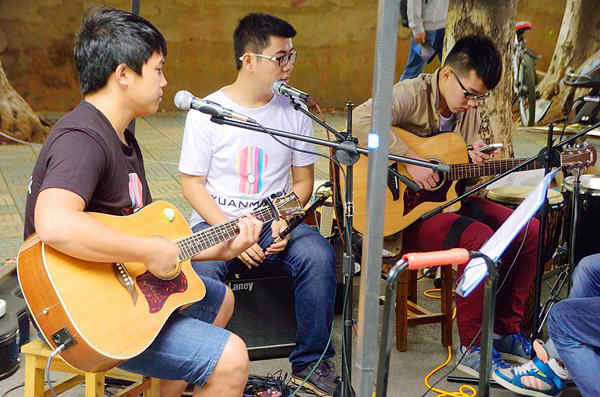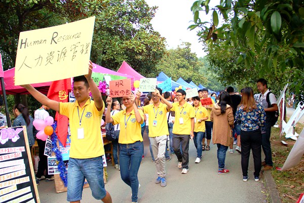 悦耳的音乐、优雅的舞步、飘逸的白色长裙、旋转拥抱、完美谢幕……交谊舞俱乐部社员们端庄大方的交谊舞表演吸引了新生们的眼球;一首炫酷的《火影忍者》主题曲,动漫社开始COSPLAY走秀,将动漫人物形象展现在三维空间,别具一格,惹来人群驻足围观;英语语言艺术团成员则身穿各式玩偶发传单,路过的学生笑呼“萌萌哒”;HR实践协会成员双举协会标牌绕着所有招新点“游行”,统一的服装、整齐飞步伐也让路人纷纷侧目。此外,还有其它众多社团用创意结合自己特色各显神通,神秘的魔术表演、激情的乐队摇滚、帅气的滑轮表演……都吸引了大量学生的注意。