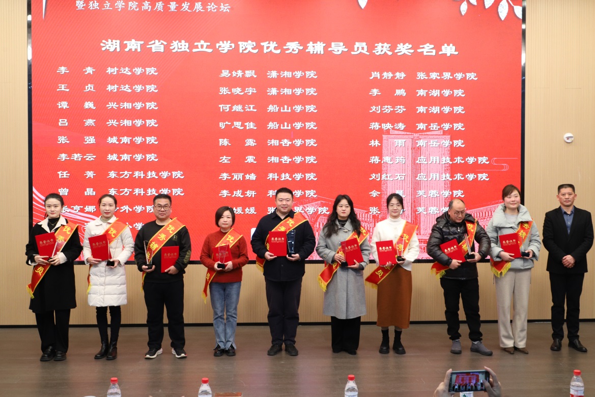 会议对评选出的湖南省独立学院优秀管理工作者、优秀辅导员和创新创业之星进行了表彰。永利官网卫枝梅老师被评为“优秀管理者”,易婧飘和张晓宇老师被评为“优秀辅导员”。