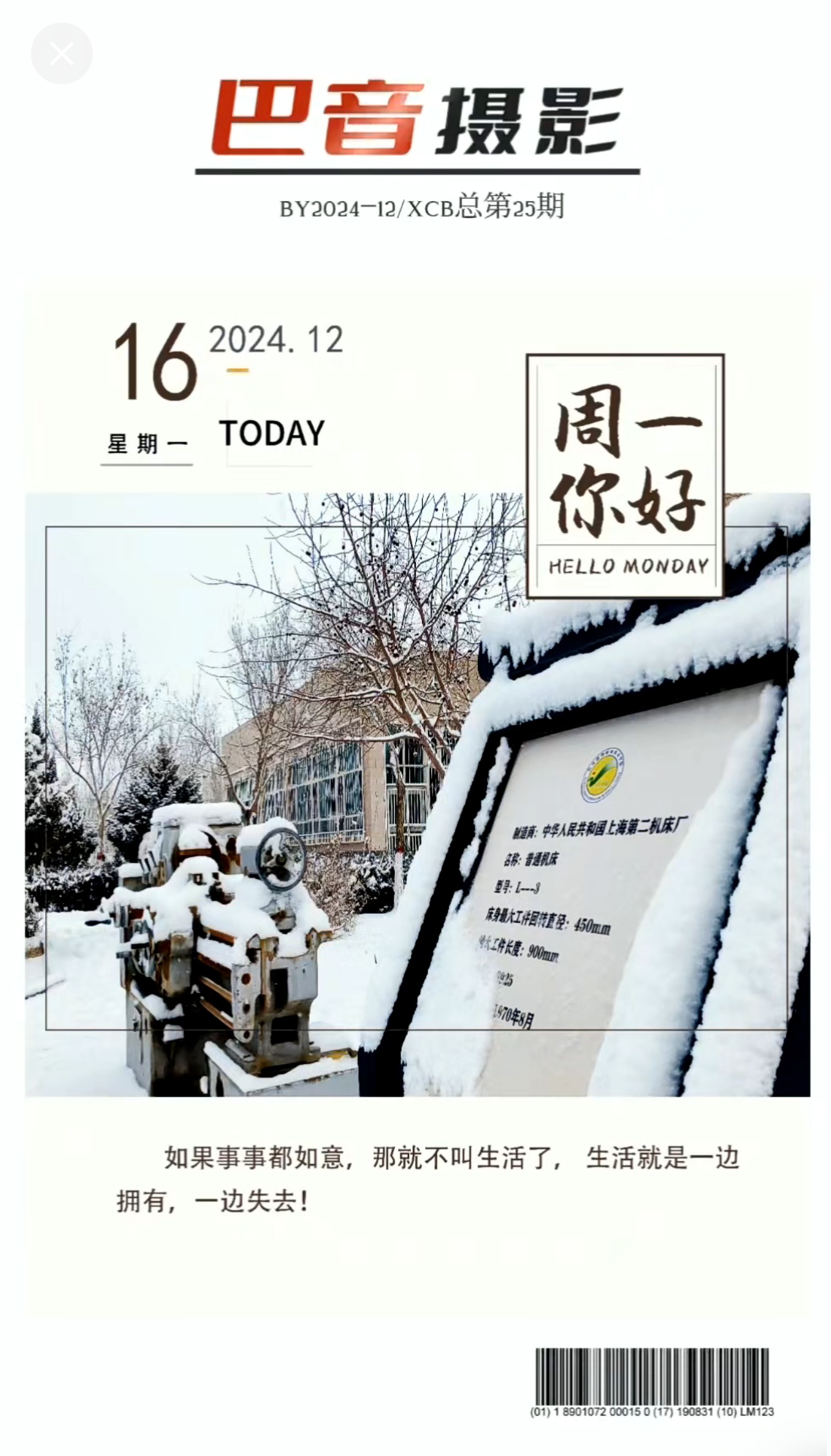 巴音摄影杂志统一编号:BY2024−12/XCB总第25期。周一你好,...